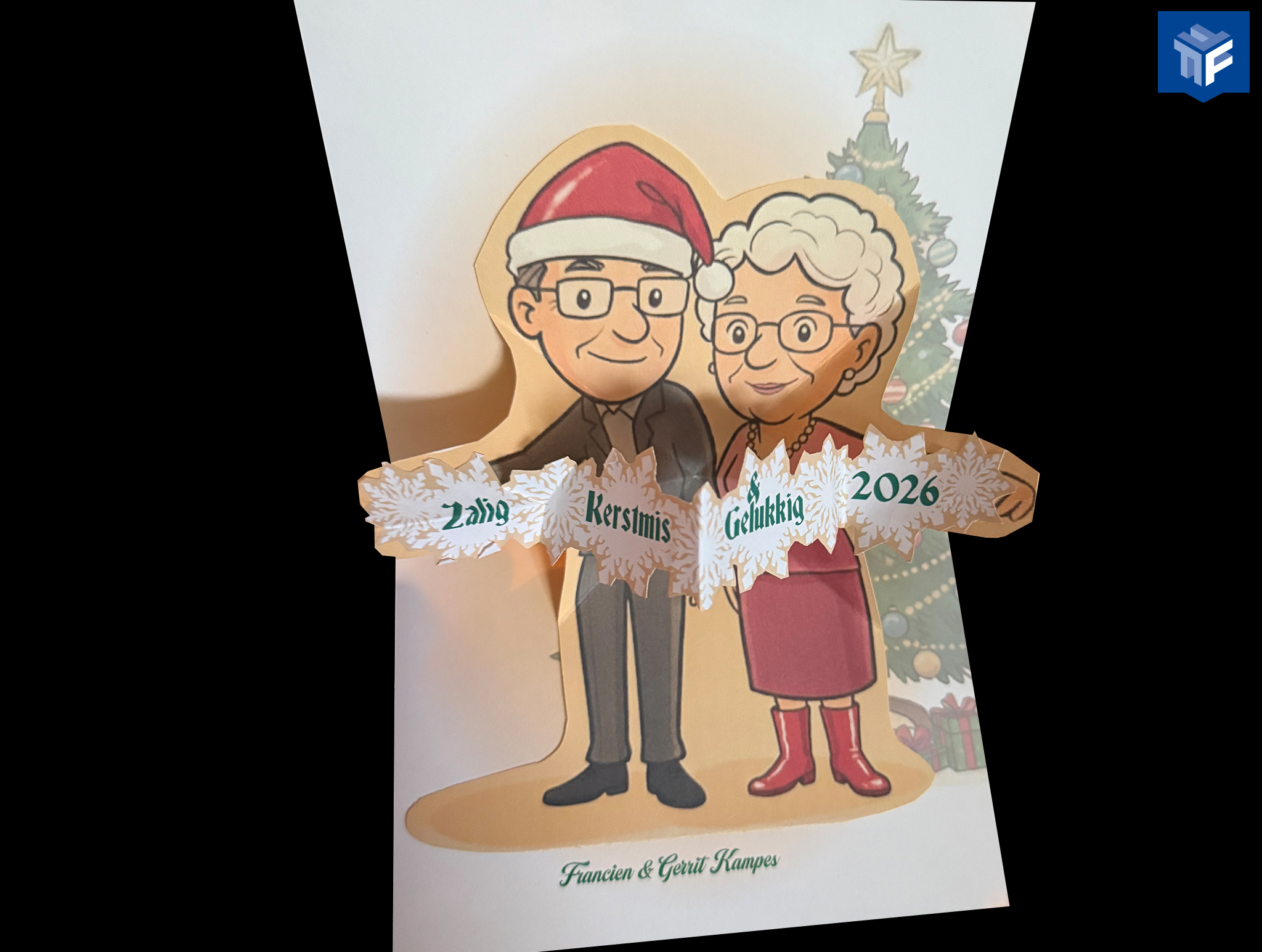 Het theater is de maximale grootte gemaakt om nog net door de brievenbus te kunnen, en een mooie aanwezigheid te hebben in een versierde woonkamer vol kerstkaarten.